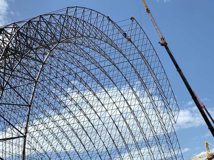 (2)网架加工前应对现场尺寸进行复测,确认无误后方可进行加工、安装;网架制作、运输、安装应遵守《空间网格结构技术规程》JGJ7-2010、《钢网架灵宝螺栓球节点》JG/T 10-2009、《钢网架灵宝螺栓球节点用高强度螺栓》 GB/T 16939-2016、《灵宝钢结构灵宝工程灵宝施工规范》 GB50755-2012、《灵宝钢结构灵宝工程施工质量验收标准》 GB50205-2020。